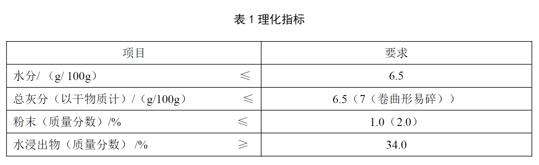 理化指标应符合表1的规定。